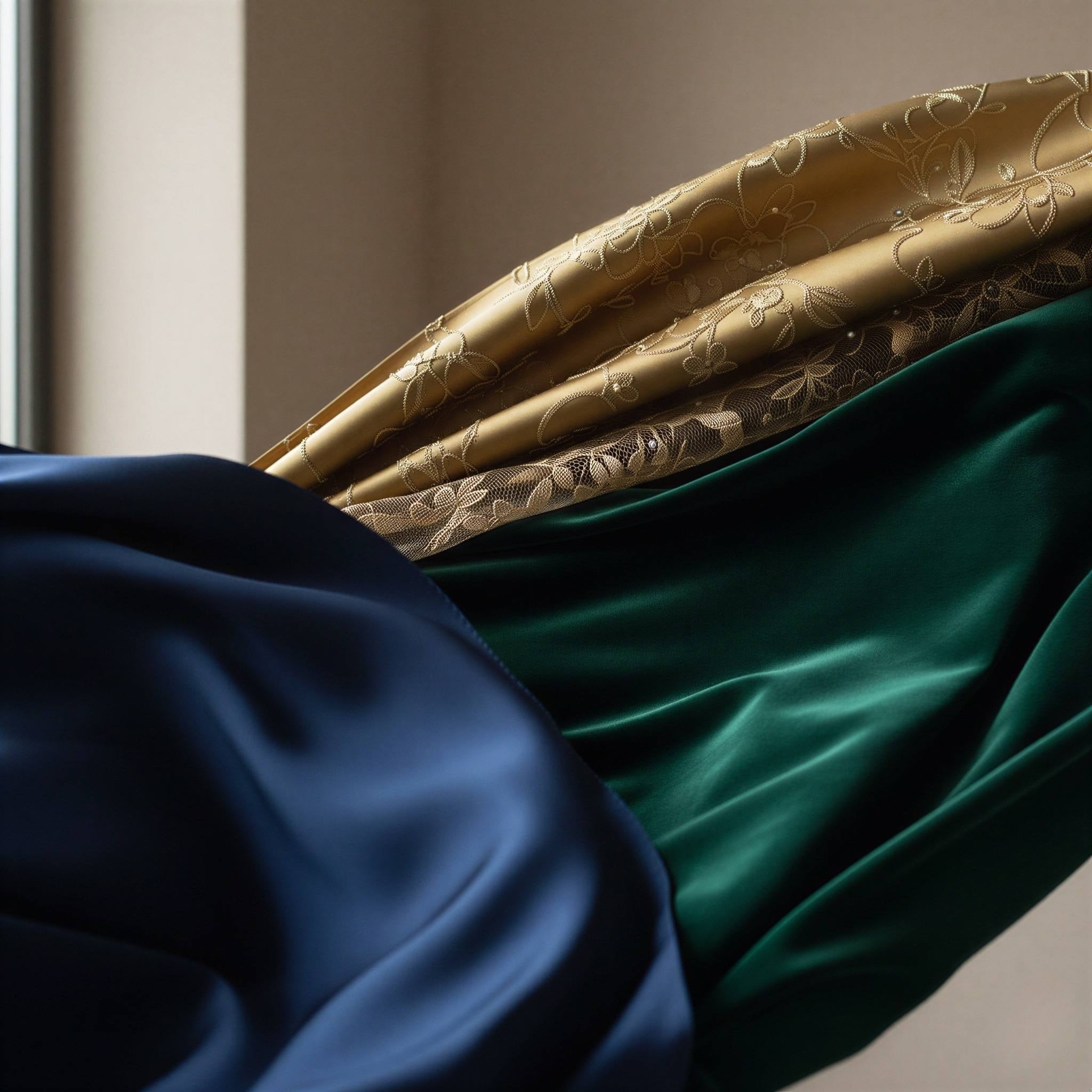 Carefully selected silks, velvets, and noble textiles chosen for their texture, durability, and refined drape.