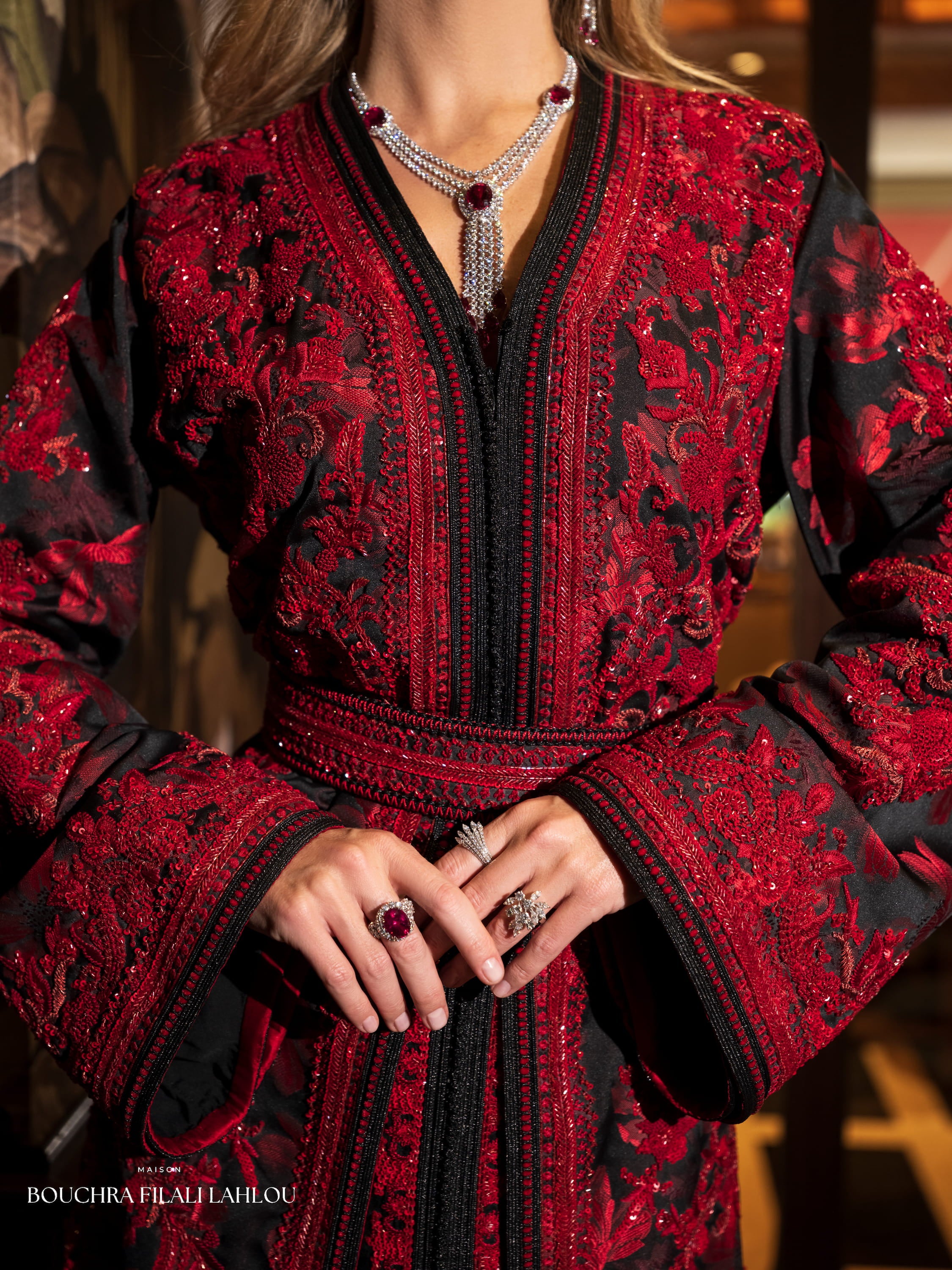 اكتشفي أحدث تصاميم القفطان المغربي الفاخر بالخامات الراقية والتطريزات الفاخرة. ابهري الجميع بإطلالتك الساحرة والفاخرة في أي مناسبة.