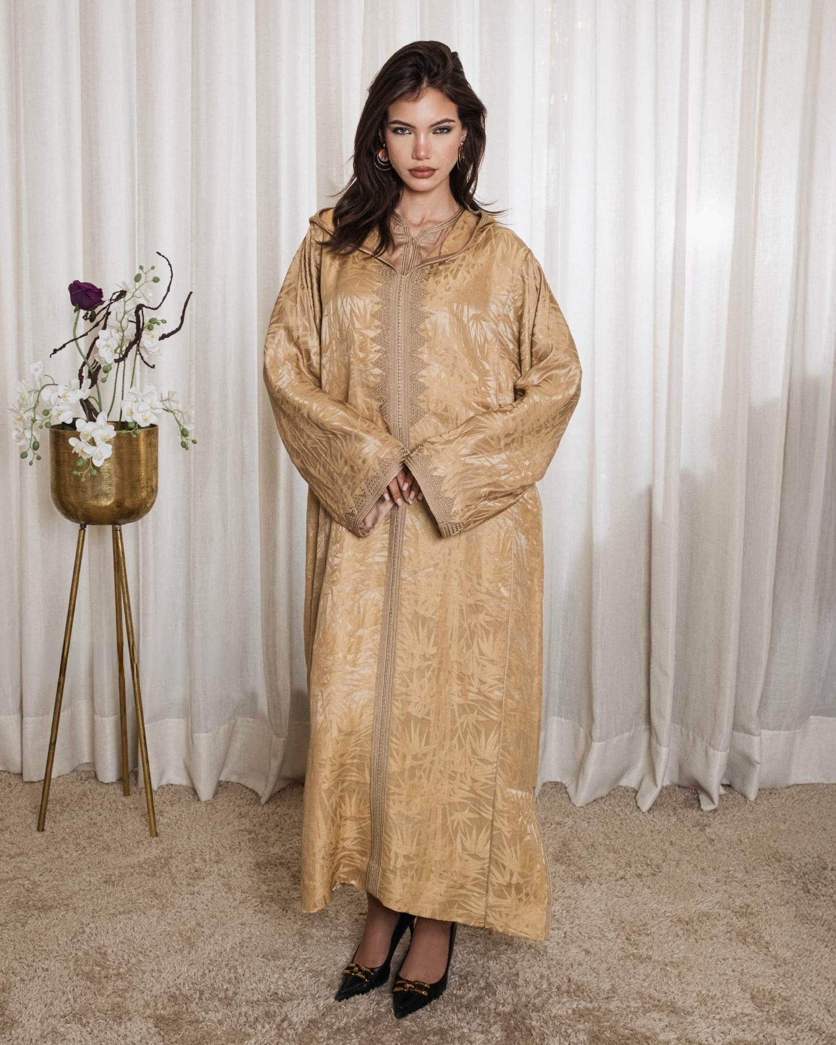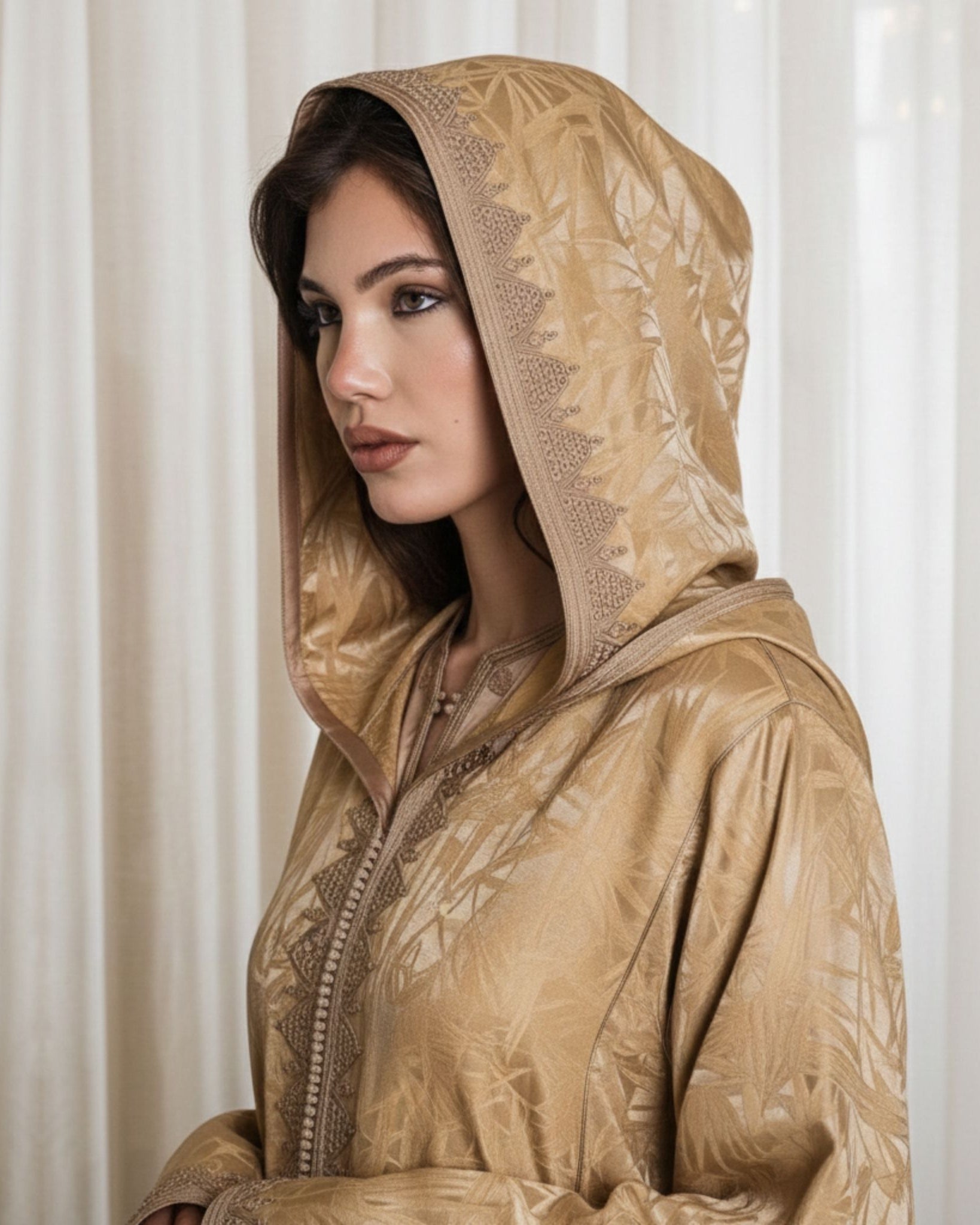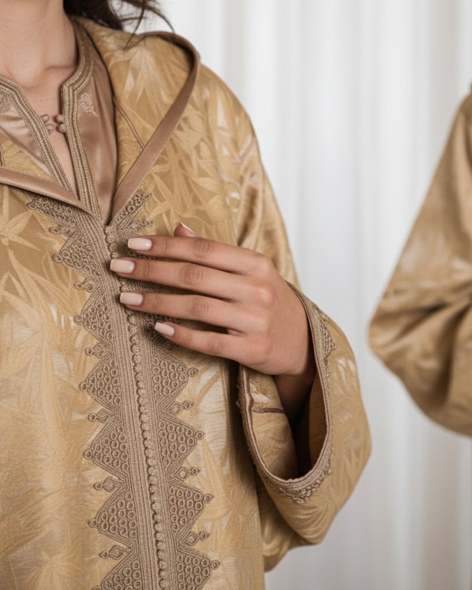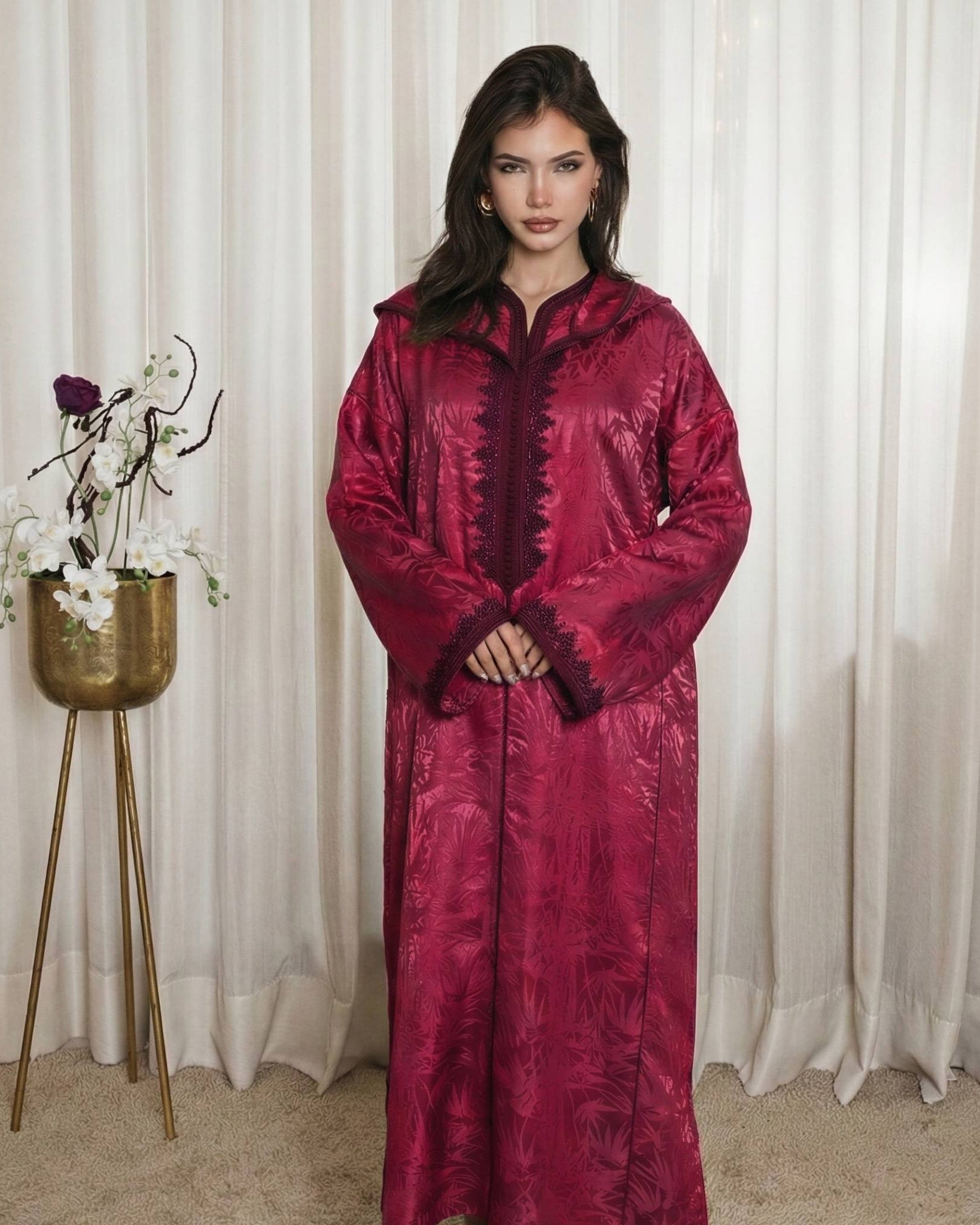 Designed for the woman who seeks elegance in every detail, these djellabas are crafted with the finest fabrics, intricate embroidery, and exquisite embellishments—creating an aura of effortless luxury. Whether for Ramadan gatherings, Eid celebrations, or refined soirées, each design embodies timeless beauty and unparalleled grace.