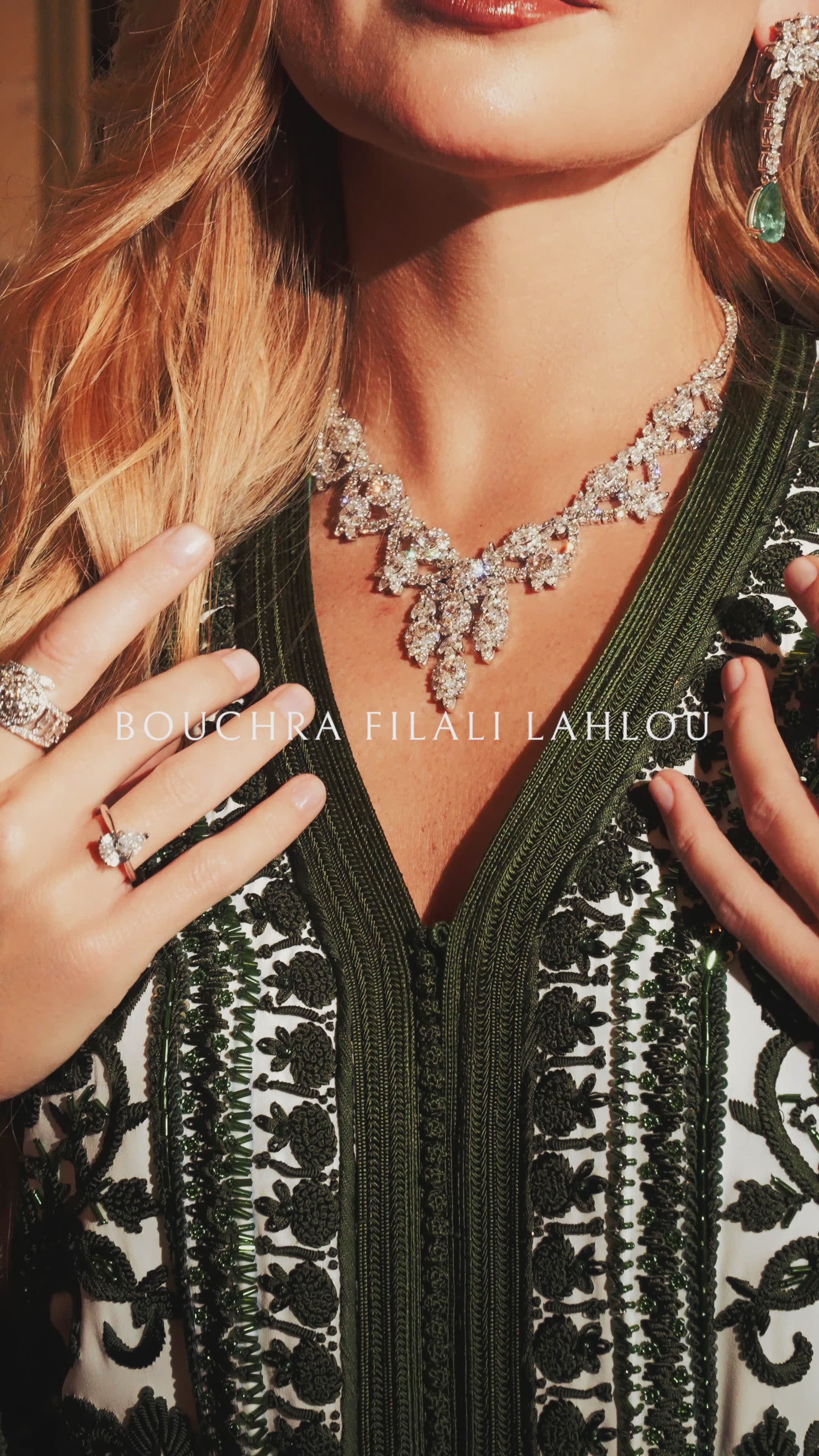Ivory Deep Green Moroccan Caftan – Emerald Nocturne